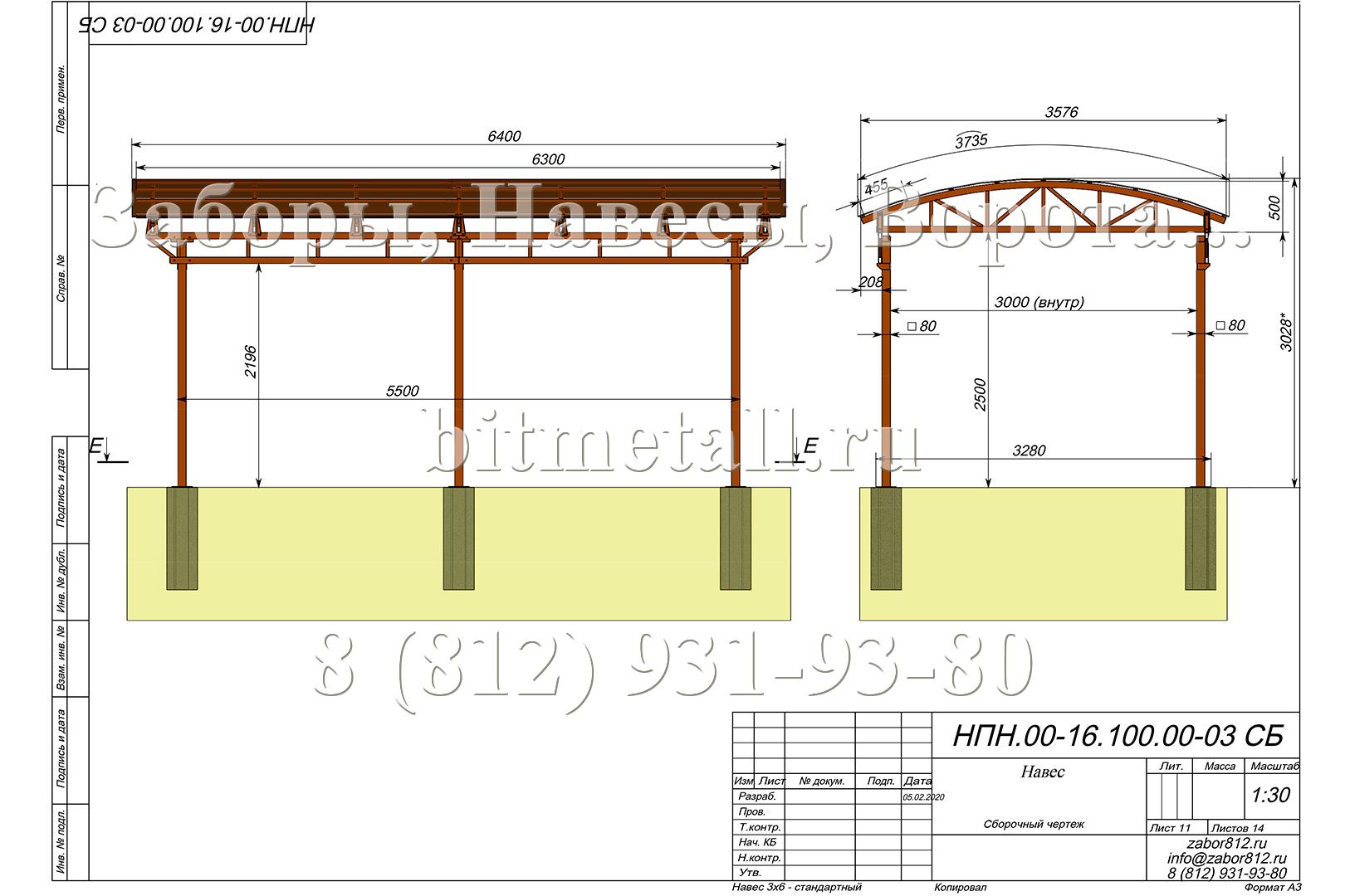 Все наши навесы изготавливаются только по проектной документации согласованной с заказчиком. Так же, мы проводим прочностные расчеты на снеговые и ветровые нагрузки для нестандартных навесов.