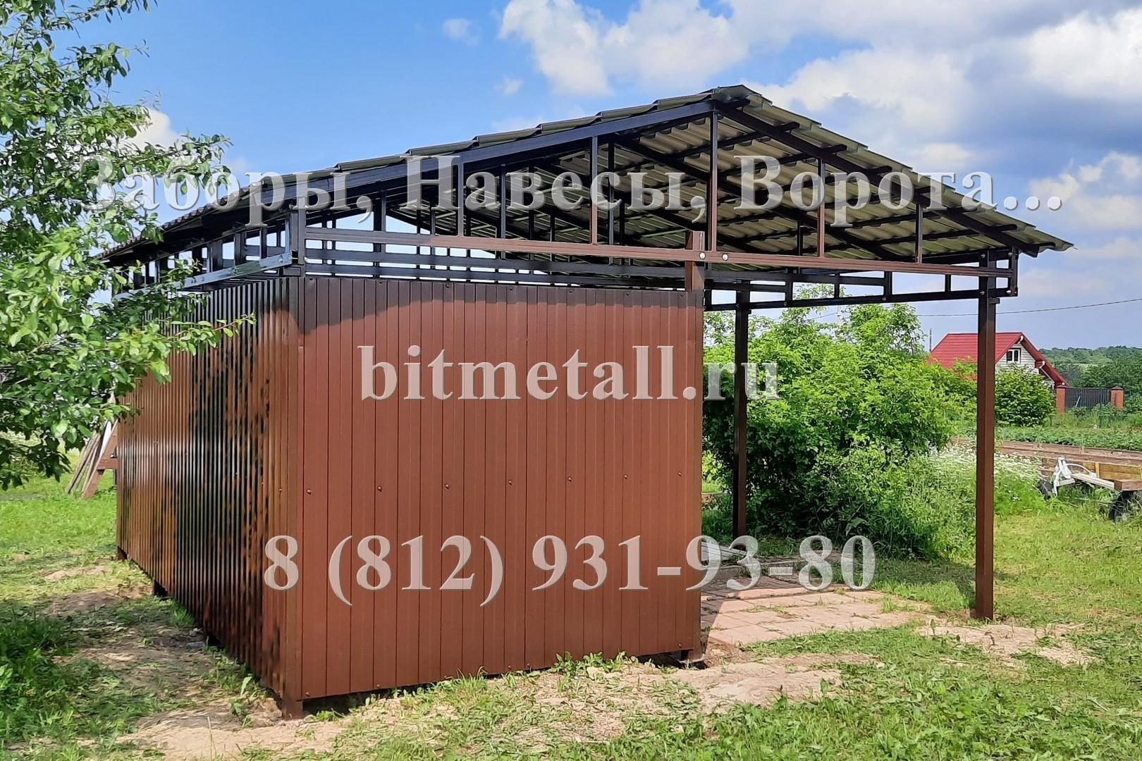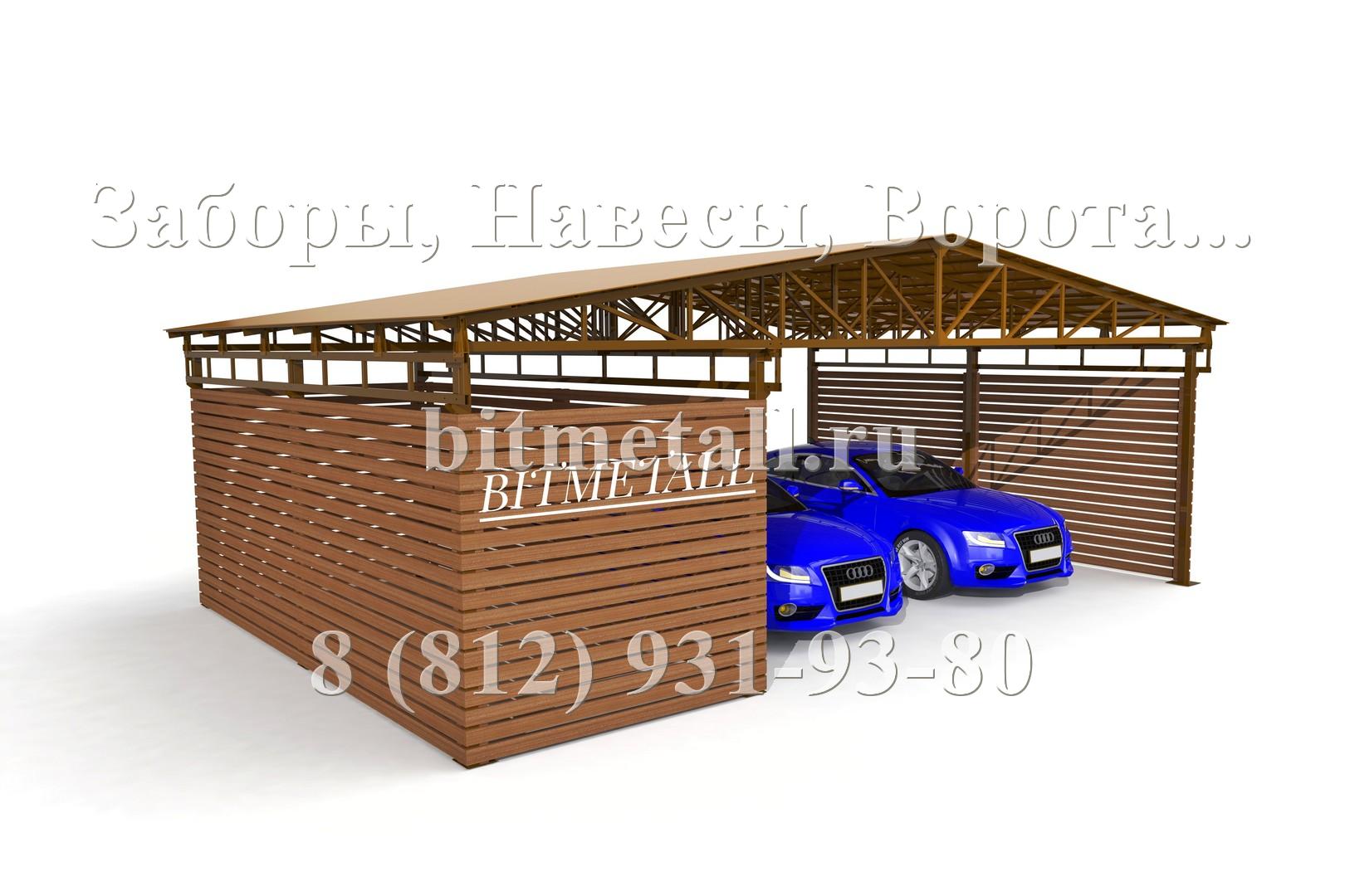Сооружения этого типа позволяют существенно снизить затраты на строительство. Важная особенность такого сооружения заключается в том, что строительство можно разделить на несколько этапов. Сначала возводится непосредственно навес, а спустя некоторое время монтируется перегородки хозблока.