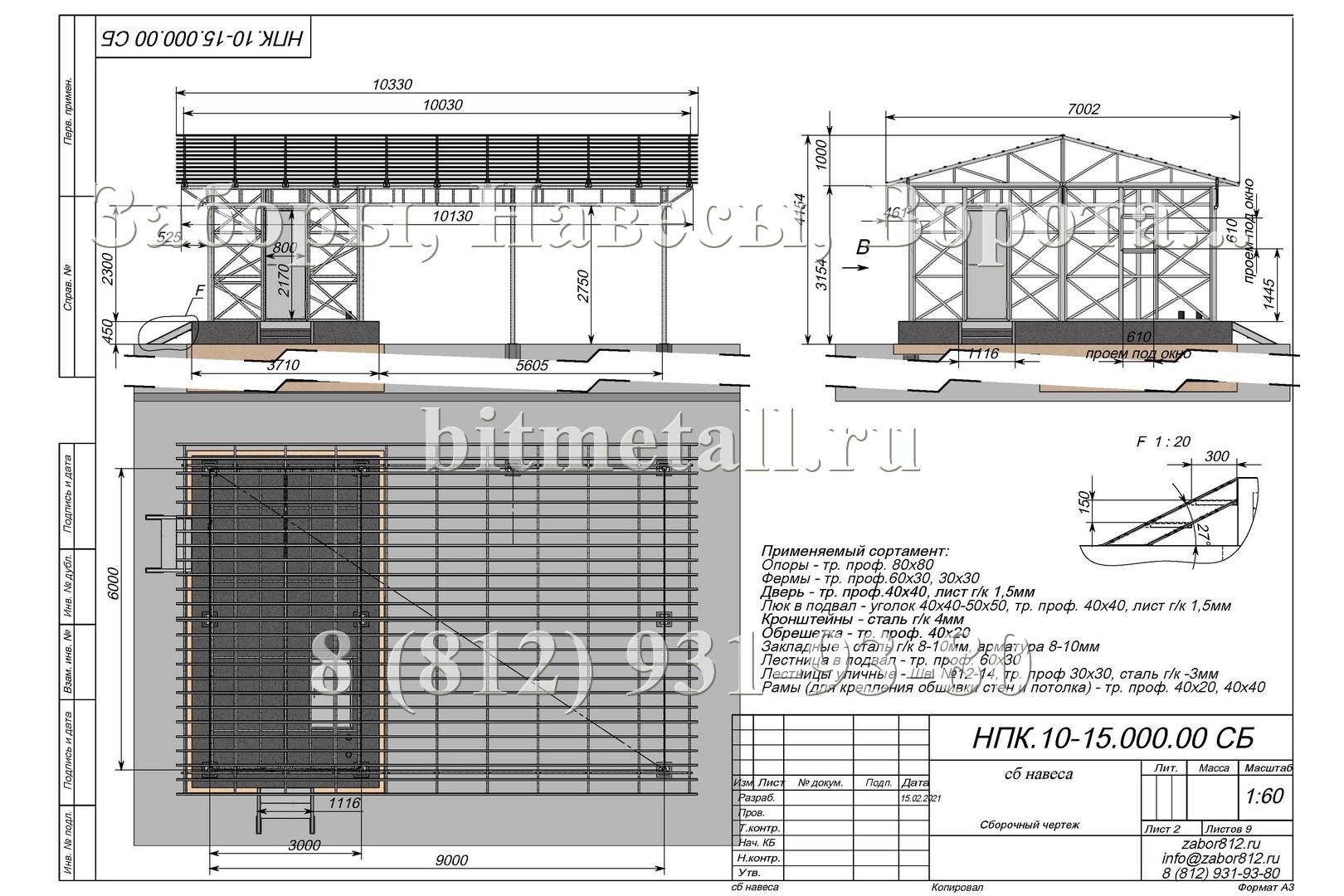 Отдельной строкой стоят хозблоки на основе навесов с плоской кровлей. Навесы этого типа относятся к категории Премиум и требуют повышенных требований к качеству исполнения и материалам отделки. Данный тип навесов является достаточно технологически сложным в изготовлении и требует серьезного подхода в разработке и изготовлении. Все элементы навеса полностью изготовлены на предприятии и не требуют каких-либо доработок при монтаже. Конструкция навеса разработана с учетом последующего монтажа без применения сварочных работ при монтаже. Сборка производится с помощью болтовых соединений, что сохраняет целостность защитного покрытия металлоконструкции и позволяет предотвратить преждевременное появление очагов коррозии в местах приварки элементов навеса. Монтаж осуществляется опытной бригадой с применением качественного профессионального инструмента, позволяющего добиваться высокого качества сборки в короткие сроки.