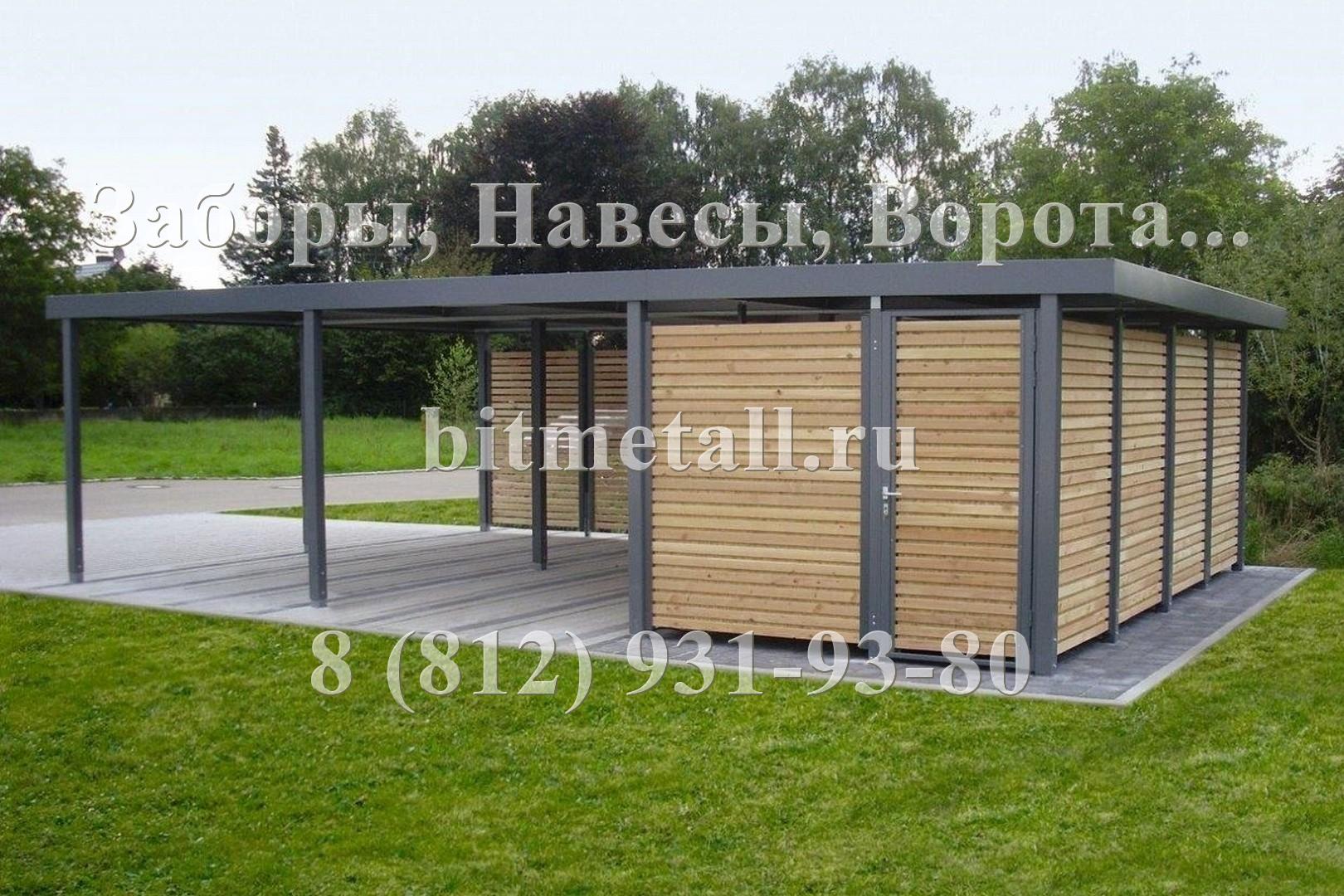 Навесы с плоской кровлей мы предлагаем в широкой гамме исполнений и отделки от просто навеса размером 6х3м, стоящего на 6 опорах, до больших комплексов со сложной геометрией и имеющих в своем составе, помимо парковочных мест для техники, отдельные места для хранения, хозяйственные помещения (хозблоки). Мы проводим постоянную работу над совершенствованием конструкции навесов и расширению номенклатуры предлагаемой продукции.