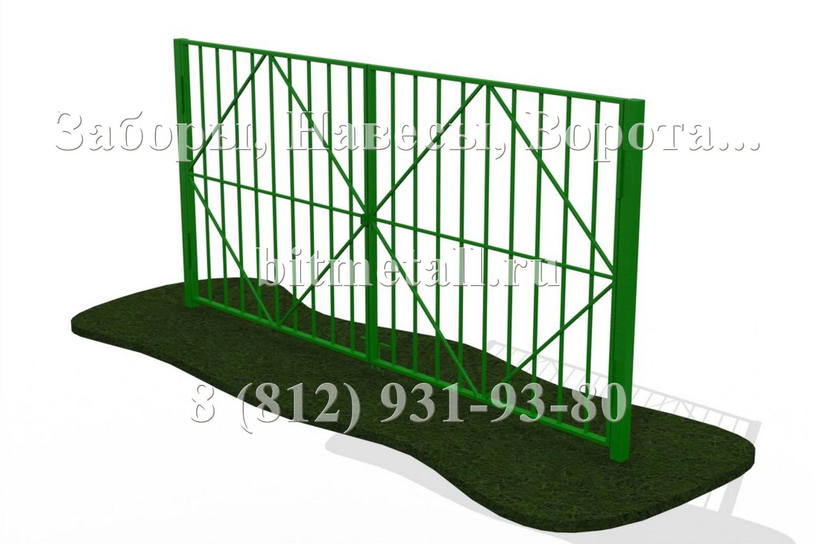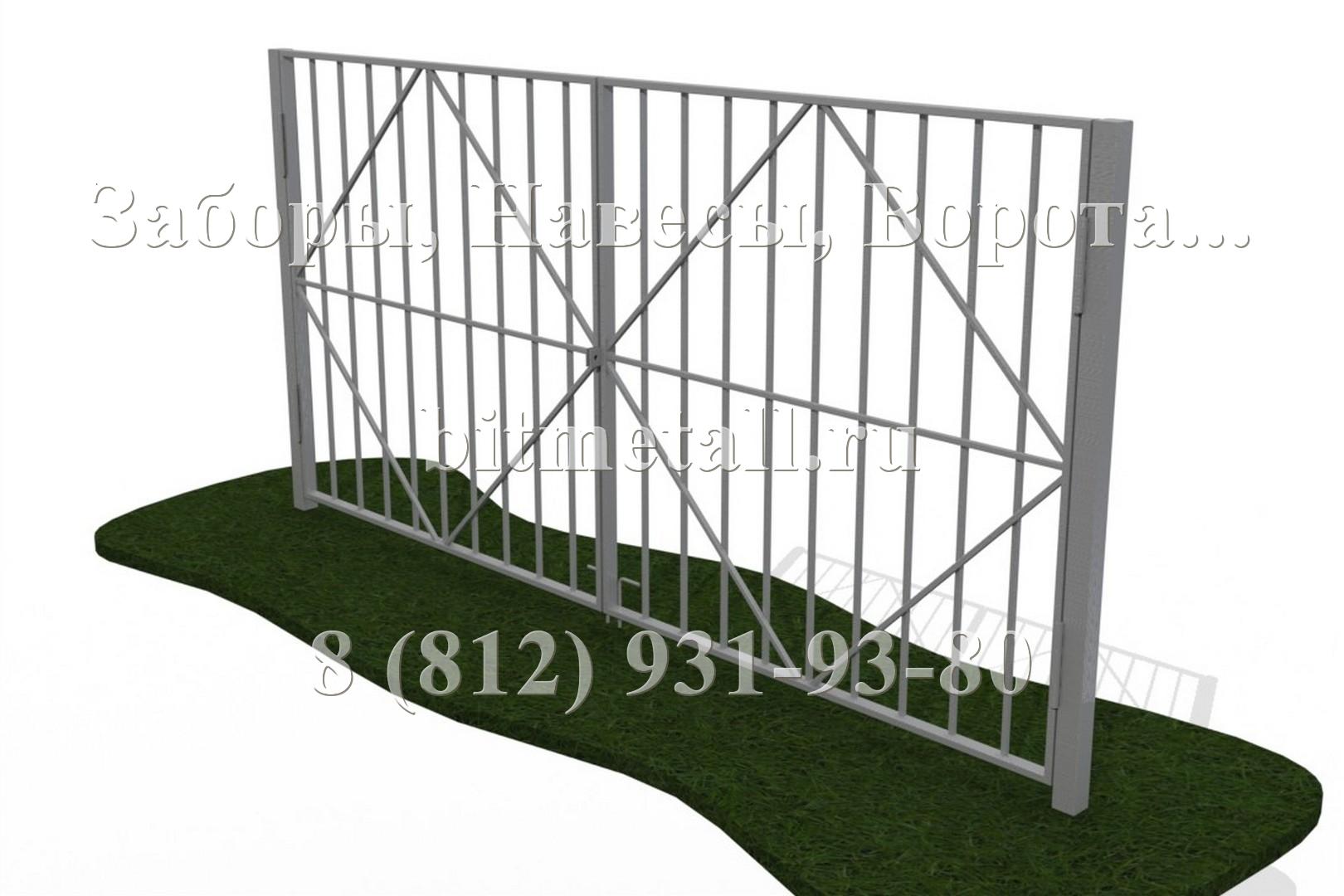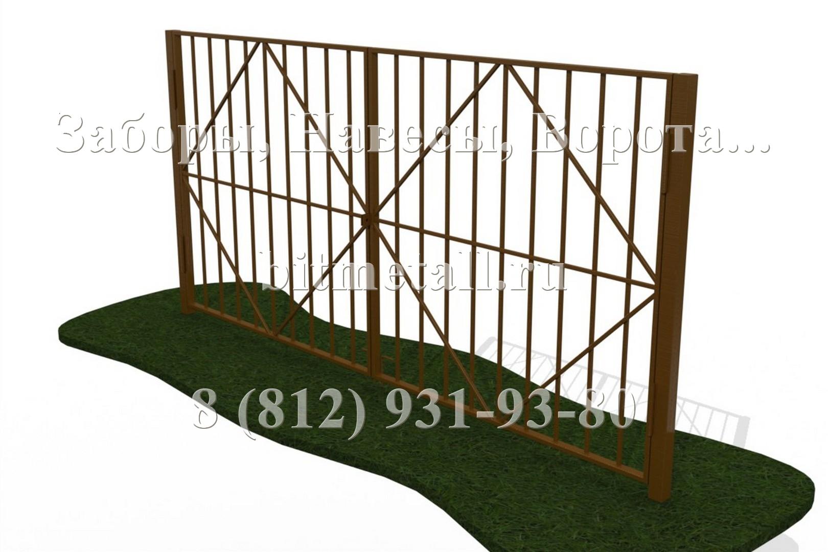 Ворота представляют собой две рамы, каркасы которых изготовлены из профильной трубы 40х40мм (60х30, 60х60мм). Декоративное заполнение внутри ворот может быть как в стиле установленного забора, так и иметь свой особый уникальный стиль. Опорные столбы изготовлены из профильной трубы 60х60мм (80х80мм, в исключительных случаях 100х100мм, и даже 120х120мм). Столбы монтируются либо на закладных, забетонированных на месте установки ворот, либо на фундаментную ленту. Фундамент должен быть правильно и точно рассчитан, исходя из размеров и массы будущей конструкции, и выполнен из качественных материалов. Он является основой в буквальном смысле слова. Под заказ мы можем произвести покраску с элементами декоративной отделки. Ворота могут быть доукомплектованы "ушами" под навесной замок, вертикальными стопорами, задвижками.