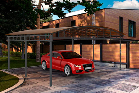 Навес арочный (сферический) является самым эстетичным из практичных решений по защите вашего автомобиля и территории двора или парковки от атмосферных осадков. Сферические навесы могут использоваться как беседки или павильоны для отдыха, террасы. Практичная, элегантная, классическая форма навеса органично впишется в планировку Вашего участка.