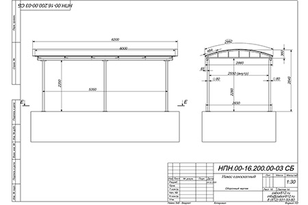 Все наши навесы изготавливаются только по проектной документации согласованной с заказчиком. Так же, мы проводим прочностные расчеты на снеговые и ветровые нагрузки для нестандартных навесов.