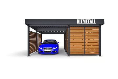 Отдельной строкой стоят хозблоки на основе навесов с плоской кровлей. Навесы этого типа относятся к категории Премиум и требуют повышенных требований к качеству исполнения и материалам отделки. Данный тип навесов является достаточно технологически сложным в изготовлении и требует серьезного подхода в разработке и изготовлении. Все элементы навеса полностью изготовлены на предприятии и не требуют каких-либо доработок при монтаже. Конструкция навеса разработана с учетом последующего монтажа без применения сварочных работ при монтаже. Сборка производится с помощью болтовых соединений, что сохраняет целостность защитного покрытия металлоконструкции и позволяет предотвратить преждевременное появление очагов коррозии в местах приварки элементов навеса. Монтаж осуществляется опытной бригадой с применением качественного профессионального инструмента, позволяющего добиваться высокого качества сборки в короткие сроки.