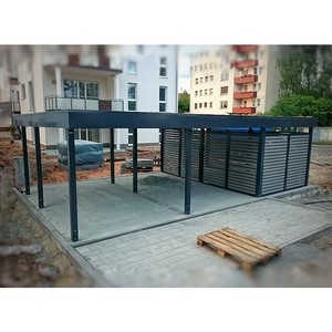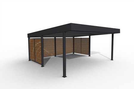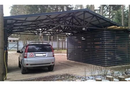 Отдельной строкой стоят хозблоки на основе навесов с плоской кровлей. Навесы этого типа относятся к категории Премиум и требуют повышенных требований к качеству исполнения и материалам отделки. Данный тип навесов является достаточно технологически сложным в изготовлении и требует серьезного подхода в разработке и изготовлении. Все элементы навеса полностью изготовлены на предприятии и не требуют каких-либо доработок при монтаже. Конструкция навеса разработана с учетом последующего монтажа без применения сварочных работ при монтаже. Сборка производится с помощью болтовых соединений, что сохраняет целостность защитного покрытия металлоконструкции и позволяет предотвратить преждевременное появление очагов коррозии в местах приварки элементов навеса. Монтаж осуществляется опытной бригадой с применением качественного профессионального инструмента, позволяющего добиваться высокого качества сборки в короткие сроки.