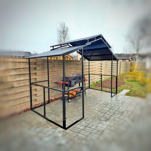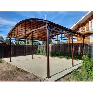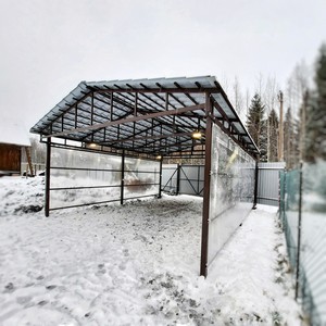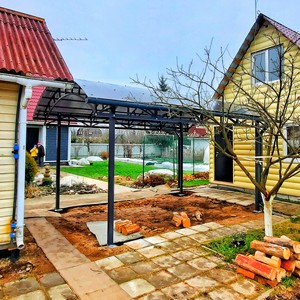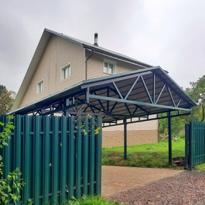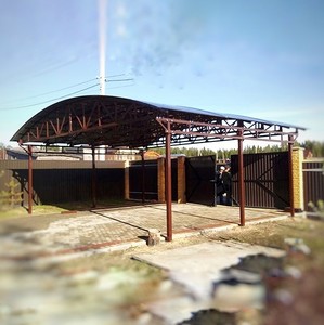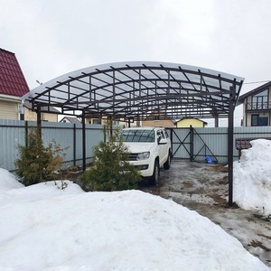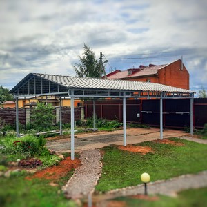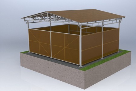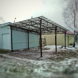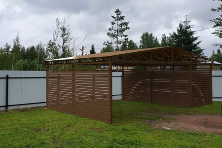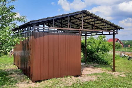 Сооружения этого типа позволяют существенно снизить затраты на строительство. Важная особенность такого сооружения заключается в том, что строительство можно разделить на несколько этапов. Сначала возводится непосредственно навес, а спустя некоторое время монтируется перегородки хозблока.