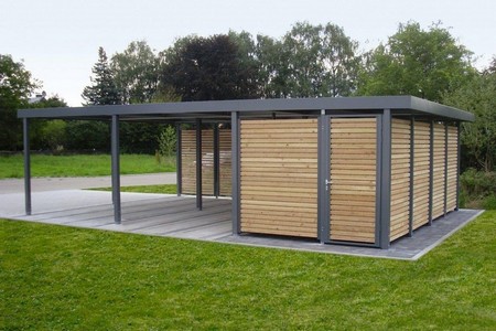Навесы с плоской кровлей мы предлагаем в широкой гамме исполнений и отделки от просто навеса размером 6х3м, стоящего на 6 опорах, до больших комплексов со сложной геометрией и имеющих в своем составе, помимо парковочных мест для техники, отдельные места для хранения, хозяйственные помещения (хозблоки). Мы проводим постоянную работу над совершенствованием конструкции навесов и расширению номенклатуры предлагаемой продукции.