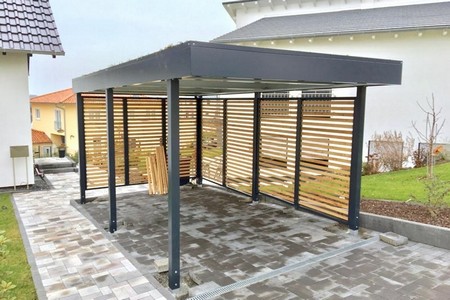 Предлагаем Вашему вниманию современный высококачественный навес с плоской крышей (кровлей).